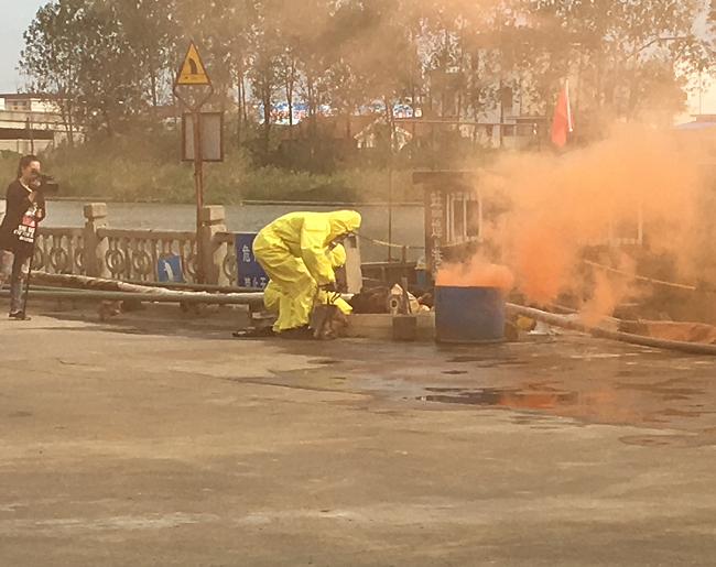 2017年10月19日下午14:30分,由海门市交通运输局主办,我司承办的2017年海门市港口环境安全事故暨内河水上突发事故应急演练在我司危化品装卸码头成功展开,参加本次演练的单位有:海门市交通运输局、海门市环境保护局、海门市人民第三医院、海门市公安局消防大队包场中队、海门市地方海事处等。本次演练总指挥由海门市交通运输局王振洪局长担任,现场总指挥由海门市交通运输局港口管理部门负责人施峰雷担任,现场应急总指挥由我司总经理张晓权担任。本次演练主要模拟公司危险品码头一根正在装卸盐酸的管道泄漏,由此分级展开对盐酸泄漏处置应急救援演练;同时在此过程中,有人落水所展开的救援行动。 |