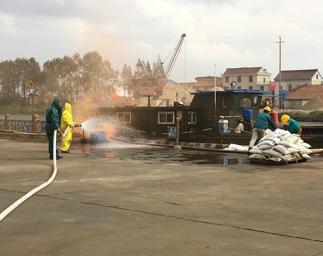 2017年海门市港口环境安全事故暨内河水上突发事故应急演练在我司危化品装卸码头演练成功 |