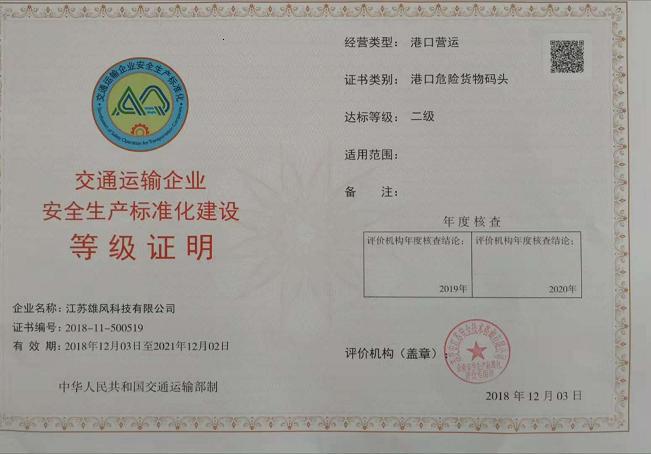 雄风科技危险货物码头顺利升级为二级安全生产标准等级